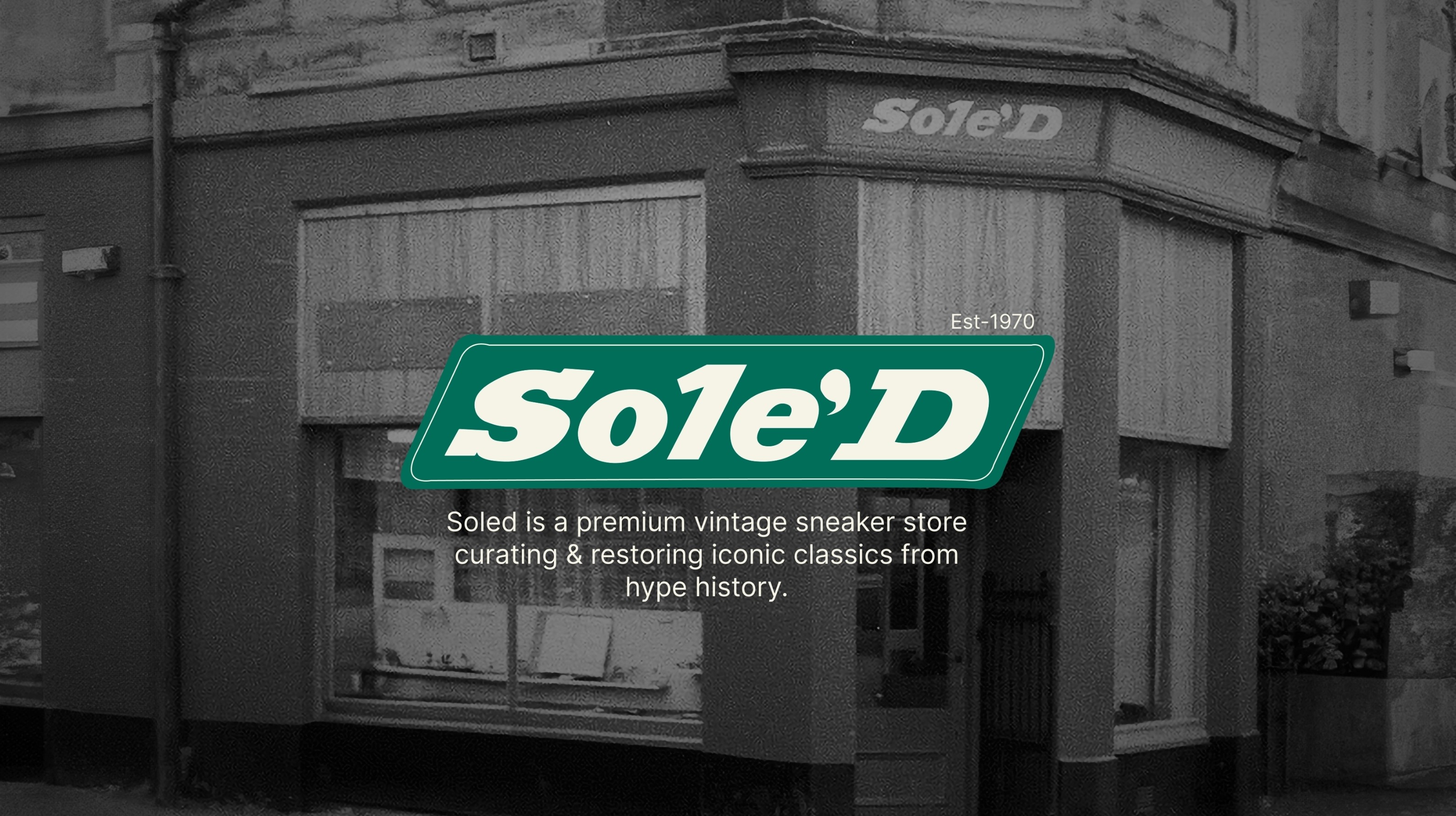 Soled is a premium vintage sneaker store concept rooted in sneaker culture and craftsmanship. I designed the logo as a bold, timeless wordmark, balancing heritage and modernity while ensuring scalability across retail and digital touchpoints.