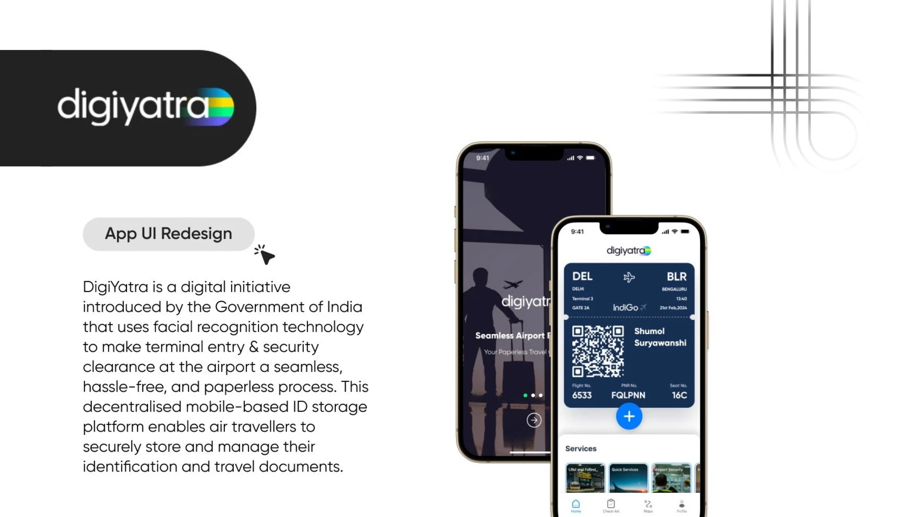 A full UI/UX redesign of the DigiYatra mobile app, enhancing system feedback, information architecture, and interface consistency to deliver a frictionless and trustworthy biometric travel experience.