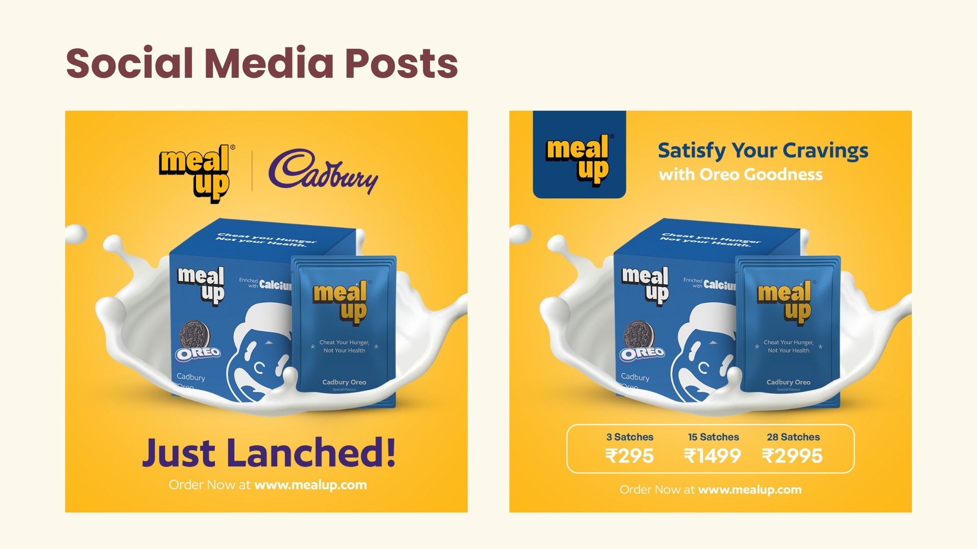The identity was extended into social media creatives to demonstrate how the brand communicates launches, pricing, and promotions. The system remains bold and legible across digital formats.